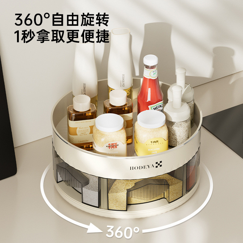 - 【360-Degree Rotating Design】: This rotating spice rack has a 360 rotating design that helps you place your items on a turntable that takes up less space. You can organize your spices and condiments in a compact and efficient way.