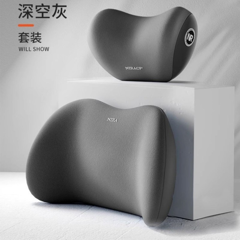 Premium Automotive Headrest & Car Pillows: Memory Foam Neck & Waist Support Cushion