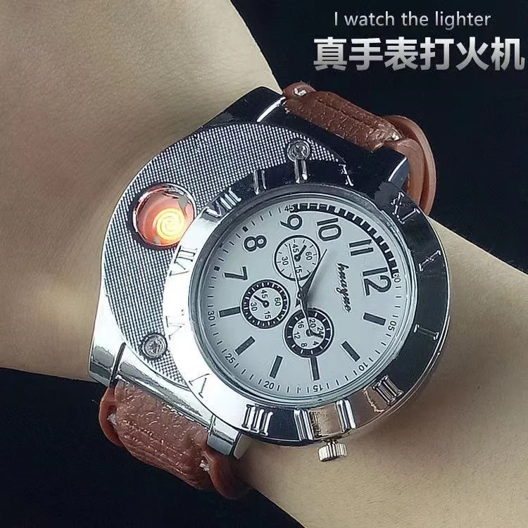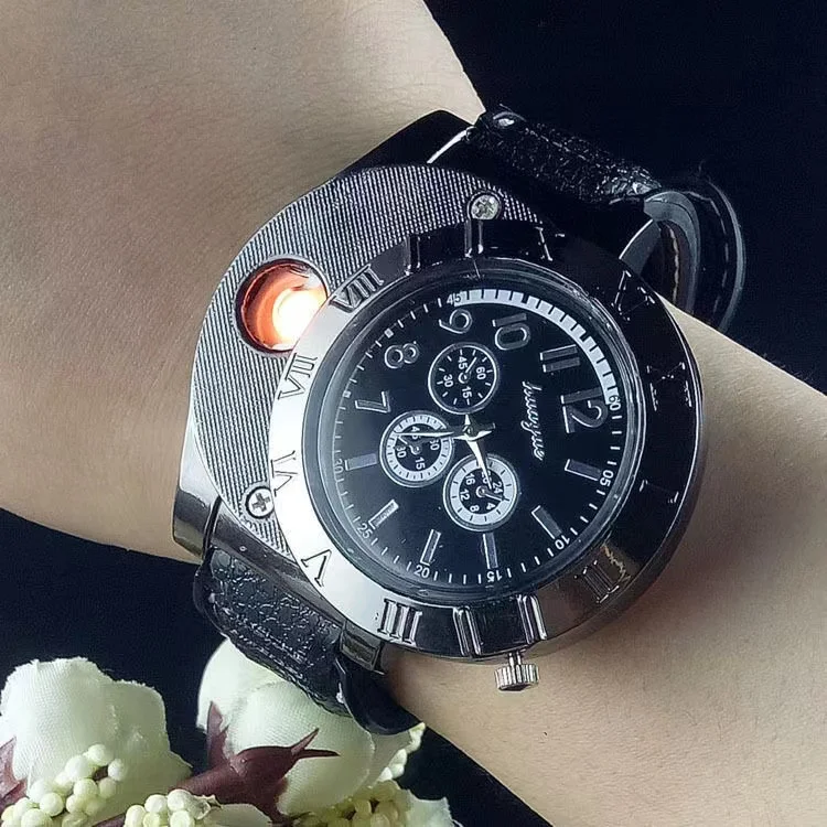 1 Pack Windproof Casual Military Quartz Watch USB Cigarette Cigar Flameless Lighter